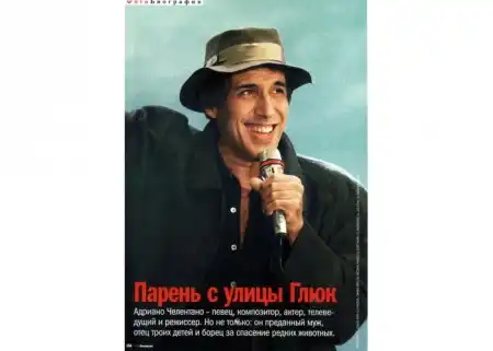...В тот субботний вечер Клаудия и Джакомо, как обычно расположились в гостиной у телевизора. Шел очередной выпуск телевизионного шоу "Фантастика", которое Адриано вел в прямом эфире. Но, святая Мадонна, что это?! Челентано выхватывает микрофон у приглашенного гостя и, проникновенно глядя в камеру, страстно произносит: "Каждый год два миллиарда охотников убивают два миллиарда птиц, а государство платит им за это деньги. Кто убийца - государство или охотнки? Животные - это такие же люди, как и мы..." "Мама, отец сошел с ума?" - тихо спрашивает Джакомо. "Не знаю", - шепчет потрясенная Клаудия... А в это время в телевизионной студии первого национального канала РАИ творится что-то невообразимое. Адвокат Марио Маффуччи набрасывается на Челентано: "Ненормальный, ты знаешь, что наделал? Завтра же референдум по проблемам ядерного оружия, и сегодня запрещена всякая агитация! Твои действия будут расценены как подстрекательство!" На следующий день четырнадцать миллионов итальянцев написали в своих бюллетенях: "Мы против убийсти, мы за любовь, мы за Челентано..." Скандал вышел грандиозный, напуганный Адриано едва откупился кругленькой суммой в двести миллионов лир...