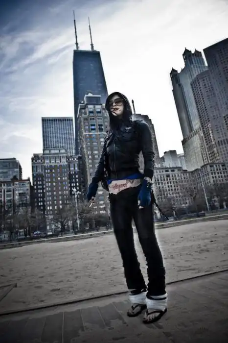 В жизни является такой же яркой личностью, как и на экране. При росте 173 см, она носит ботинки на высокой платформе, и тогда её рост достигает 186 см. Её отличительной особенностью являются эбонитовые волосы, дымчатый макияж глаз и множество татуировок, которые покрывают 75 % её тела.