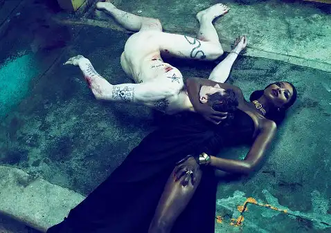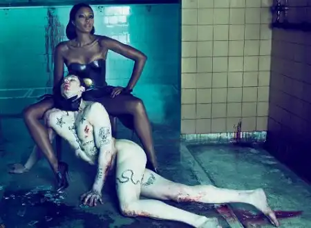 Похоже, что взрывной характер Наоми Кэмпбелл не довел ее до добра – под прицелом камеры модного фотодуэта Mert&Marcus она … замучила молодого человека до смерти. Не волнуйтесь, ни один несчастный при съемке не пострадал!