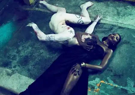 25-летие в модном бизнесе Наоми Кэмпбелл отметила участием в провокационной фотосессии журнала Interview, где ее модным аксессуаром стал … труп молодого мужчины.
