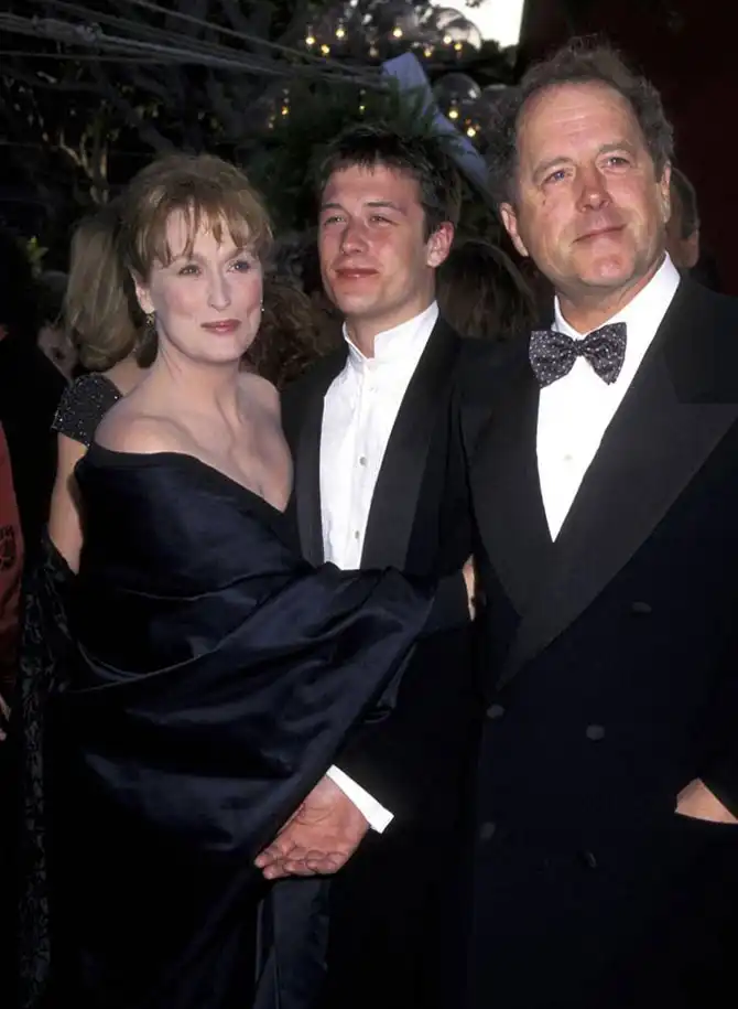 В 1978 году Мэрил Стрип вышла замуж за скульптора Дона Гаммера (справа). У пары 4 детей. На этой фотографии в обнимку с матерью запечатлён сын Генри. Две из трёх дочерей Стрип выбрали для себя актёрскую профессию.