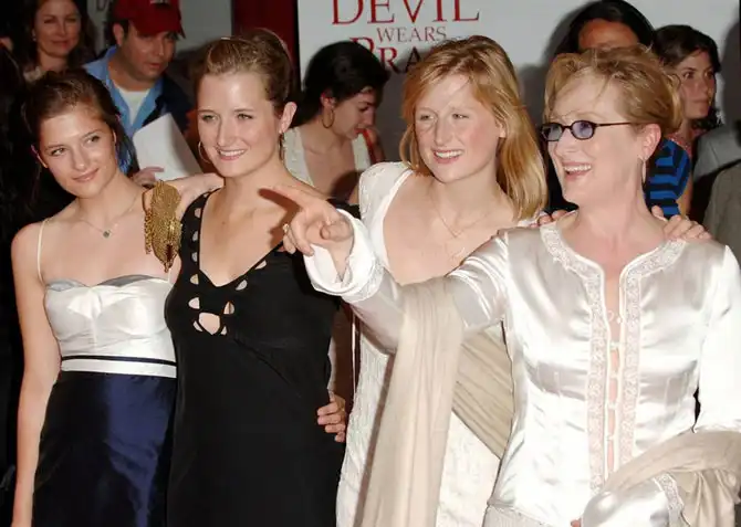 На премьеру фильма «Дьявол носит Prada» Мэрил Стрип пришла вместе с дочерьми. Слева на право: Луиза, Грэйс и Мэйми. 19 июня 2006 года, Нью-Йорк.