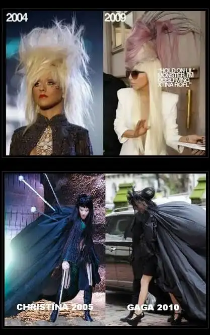 мне нравится леди гага. и на некоторых фотках,как я поняла, наоборот, некоторые звёзды гагу копируют
