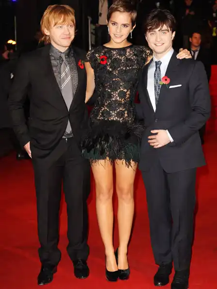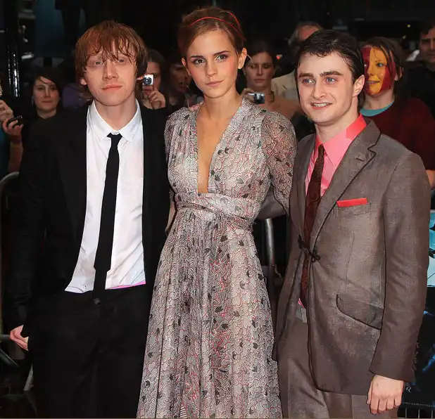 11 ноября 2010 года. Руперт Грин, Эмма Уотсон и Дэниэл Рэдклифф на мировой премьере фильма «Гарри Поттер и Дары смерти: Часть 1» в кинотеатре Одеон в Лондоне.
