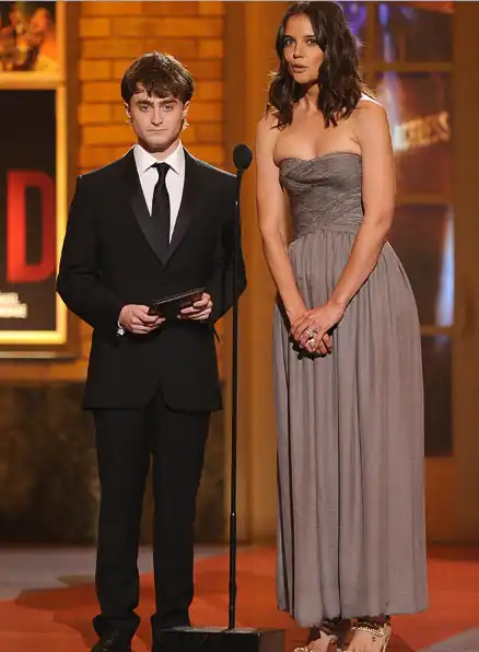 13 июня 2010 года. Дэниэл Рэдклифф и Кэти Холмс во время 64-ой церемонии вручения наград Annual Tony Awards в Нью-Йорке.