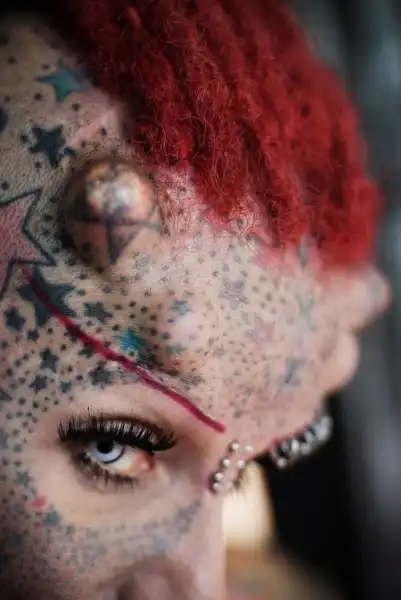 “Каждый из нас на протяжении жизни меняется, кого то меняет беременность, кто то теряет зубы и волосы, но татуировки и бодимодификации, которые я делала помогали мне чувствовать себя настоящим воином, а это очень важно для меня. Особенно, я чувствовала это когда наносила рисунки на лицо. Это очень личное и в тоже время сделавшее меня намного сильнее”