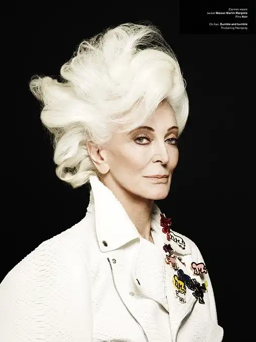 Они сделали пробную фотосессию. В то время Кармен начала седеть, но вместо того что бы покрасить волосы, она высветлила их ещё больше, снявшись совершенно седой! Это был переворот в мире модной фотографии!