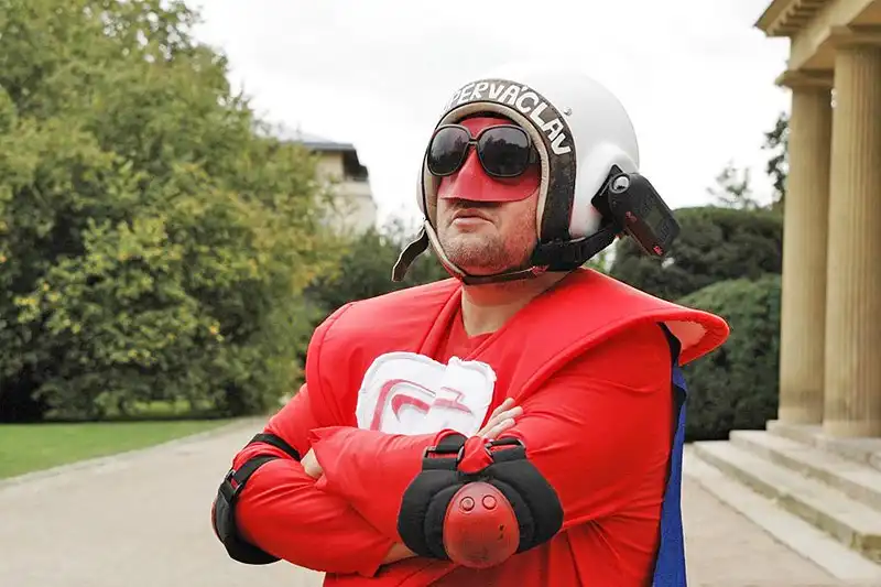 В Праге объявился новый супергерой. Как сообщает местная пресса, мужчина в синем трико, красной кофте, плаще и шлеме с видеокамерой, называет себя СуперВацлавом и считает своей миссией борьбу с несправедливостью, лицемерием и безразличием чехов к происходящему вокруг.