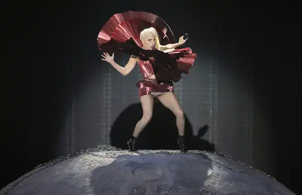 49. Певица Lady Gaga выступает перед представителями масс-медиа после шоу.
