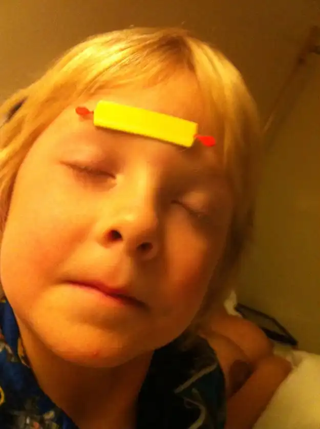 Все, кто смотрел в свое время сериал Беверли Хиллз 90210, точно помнят Тори Спеллинг - дочь главного продюсера. У нее всегда титьки были стремные, как будто прилепленные отдельно. И вот недавно ее муж Дин Макдермонт опубликовал в твиттере фото их общего сына Лайама с какой-то фигней, прилепленной ко лбу. Но гораздо интереснее то, что находится на заднем плане. Что делает сын в одной кровати с матерью, у которой обнажена грудь?