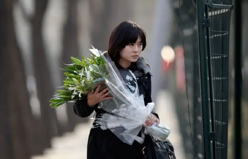 28. Девушка несет цветы к посольству Северной Кореи в Пекине, чтобы почтить память Ким Чен Ира. (Reuters/Jason Lee)