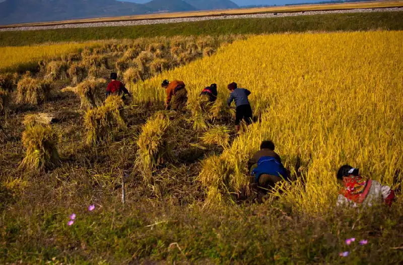 34. Крестьяне убирают поля вблизи восточного прибрежного города Вонсан.