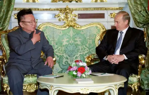 13. 4 августа 2001 года состоялась встреча Ким Чен Ира с президентом России Владимиром Путиным. (AP Photo/ITAR-TASS/ Presidential Press Service)