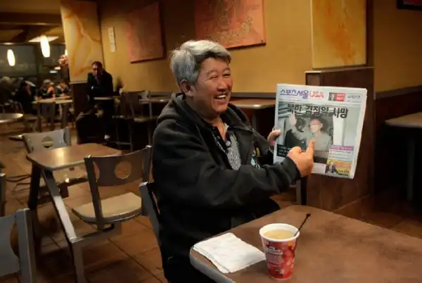 29. Стив Парк – корейский иммигрант, проживающий в Лос-Анджелесе. На фото: Стив, читающий новость о смерти лидера Северной Кореи. (AP Photo/Jae C. Hong)