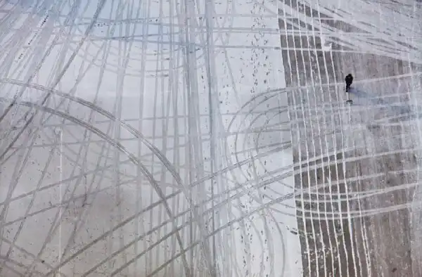 32. Рабочий убирает снег в Пхеньяне. (AP Photo/David Guttenfelder)