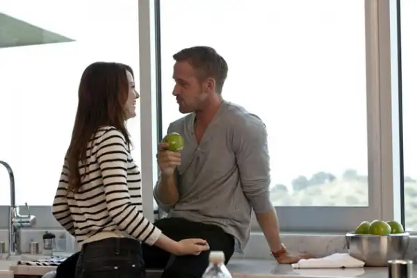 Райан Гослинг в фильме «Эта дурацкая любовь» играет профессионального донжуана, одно из главных оружий которого — идеальный гардероб. В него входят сидящие как влитые костюмы, рубашки с расстегнутым воротом и джемперы с треугольным вырезом, открывающие ключицы.