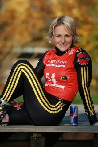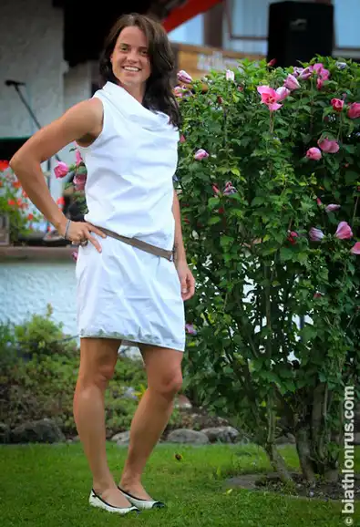 Андреа Хенкель,33 года(Германия).Лучшее место в Общем зачёте Кубка мира-1(2006-2007).Лучшее место на ОИ-1 в индивидуальной гонке и женской эстафете(Солт-Лейк Сити 2002).