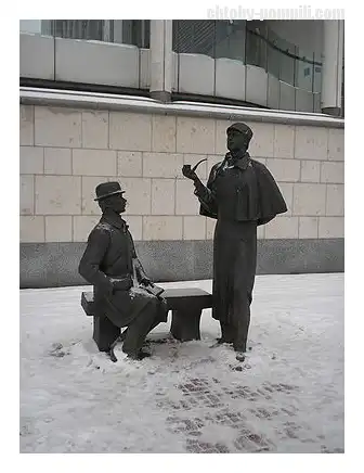 В Москве, на Смоленской набережной была установлена скульптурная композиция "Шерлок Холмс и доктор Ватсон".