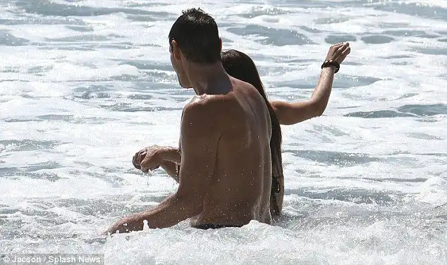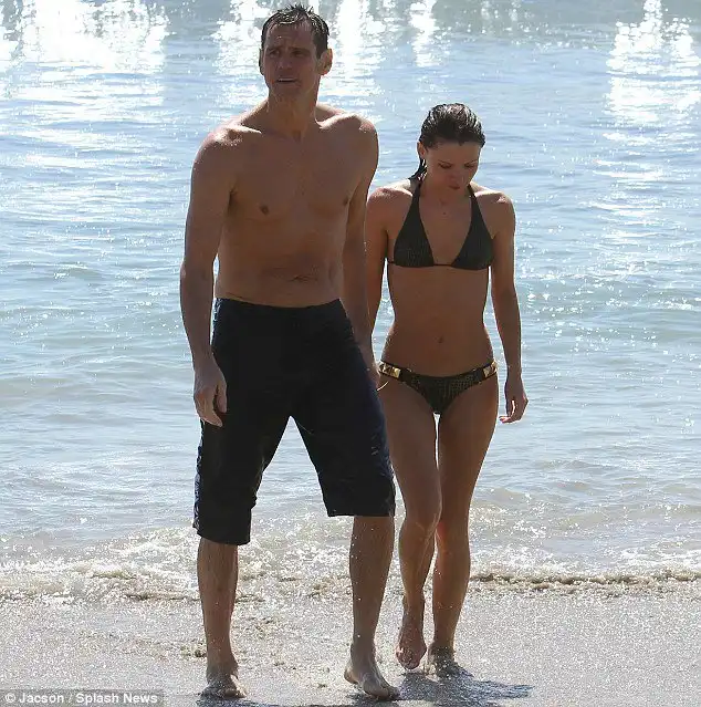 Джим Керри с новой подругой вчера во время отдыха на пляже в Малибу.