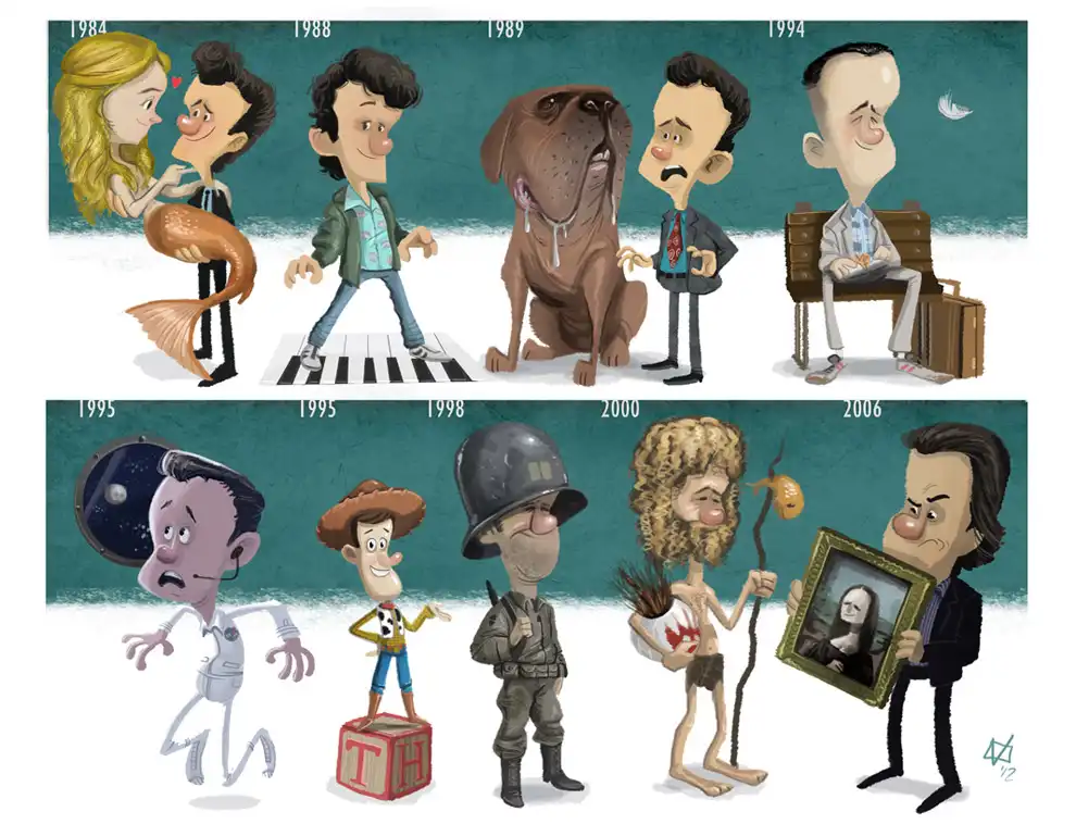 Он нарисовал серию картинок в которой показал, как менялись образы известных актеров.