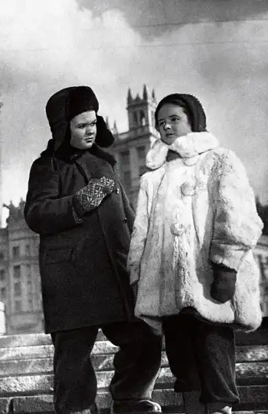 Яков Сегель и Жанна Болотова на съемках картины «Дом, в котором я живу», 1956 год.