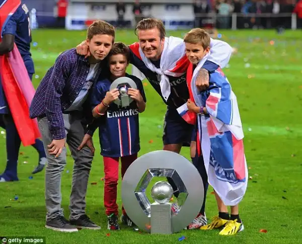 Конечно же, поддержать Дэвида пришли на стадион и Виктория с детьми и с родителями.