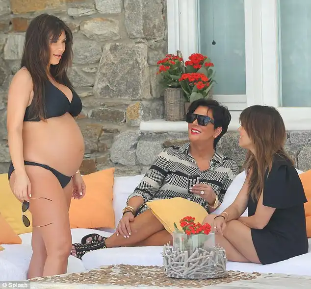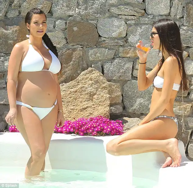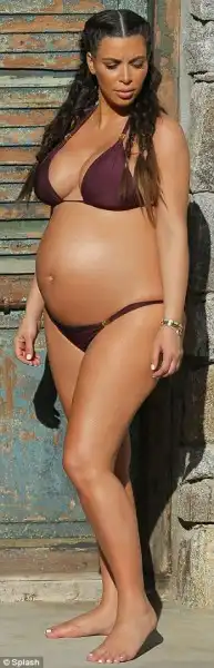 Ким Кардашьян (32 года), на 7 месяце беременности снялась в "бикини-сессии" возле частного бассейна