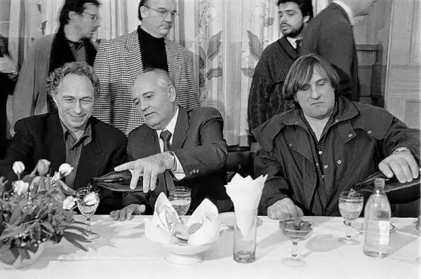 11. Михаил Горбачев в окружении Пьера Ришара и будущего россиянина Жерара Депардье.