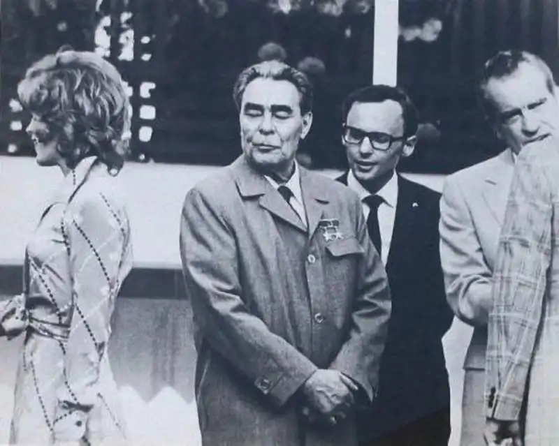 9. Актриса Джил Сэнт Джон, Леонид Брежнев и президент Никсон.