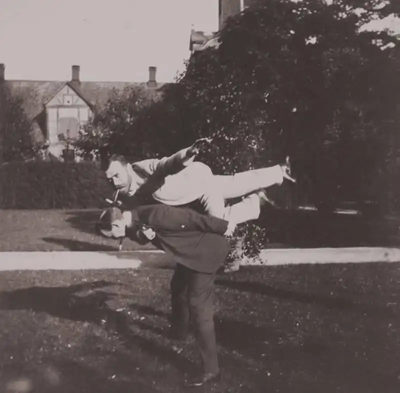 6. Акробатические упражнения. Принц греческий Николай, сверху император Николай II.