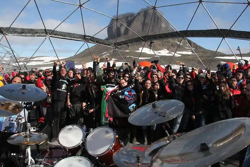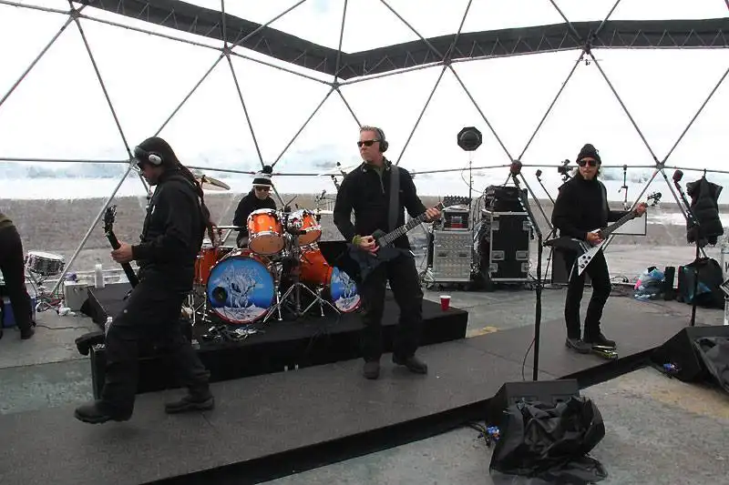 На официальной official Facebook-странице METALLICA появились первые фотографии с выступления группы в Антарктиде, спонсором которого были Coca-Cola Zero."Это было самое уникальное шоу из всех, что давала METALLICA. Группа, победители, ученые на станции (из России, Южной Кореи, Китая, Польши, Чили, Бразилии и Германии)команда судна, все набились в это небольшое помещение вертолетной площадки на станции Карлини в Антарктиде! Энергетика этого помещения была невероятной! Словами не описать, как счастлив был каждый из собравшихся