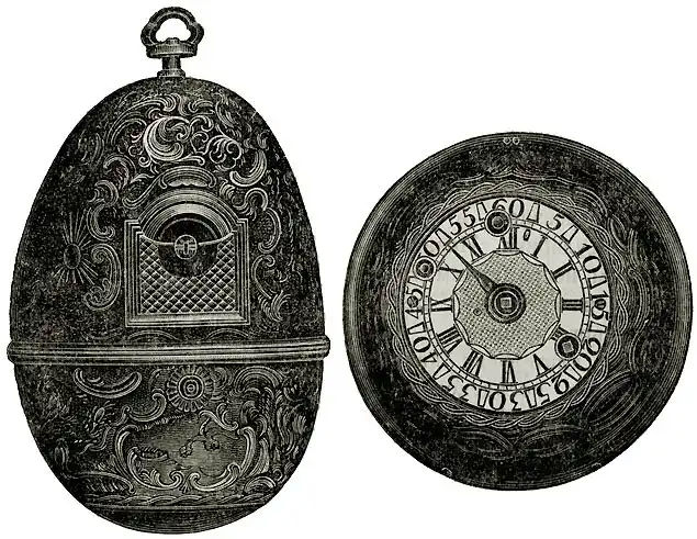 После нескольких лет упорного труда, многих бессонных ночей, построил в 1767 г. удивительные часы. «Видом и величиною между гусиным и утиным яйцом», они были заключены в затейливую золотую оправу.