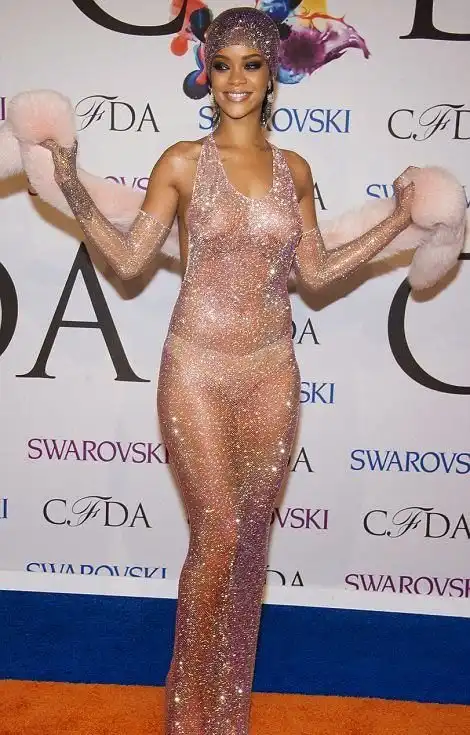 Певица Рианна, которая уже давно считается настоящей иконой моды и стиля, появилась на церемонии вручения наград Совета модных дизайнеров Америки CFDA 2014 в шикарном прозрачном платье от дизайнера Адама Сельмана. Хоть для изготовления этого удивительного наряда потребовалось 216 тысяч кристаллов Сваровски, оно практически не скрывает наготу. Обязательно смотрим далее на Рианну, которая без стеснения продемонстрировала свою фигуру, позируя фотографам.
