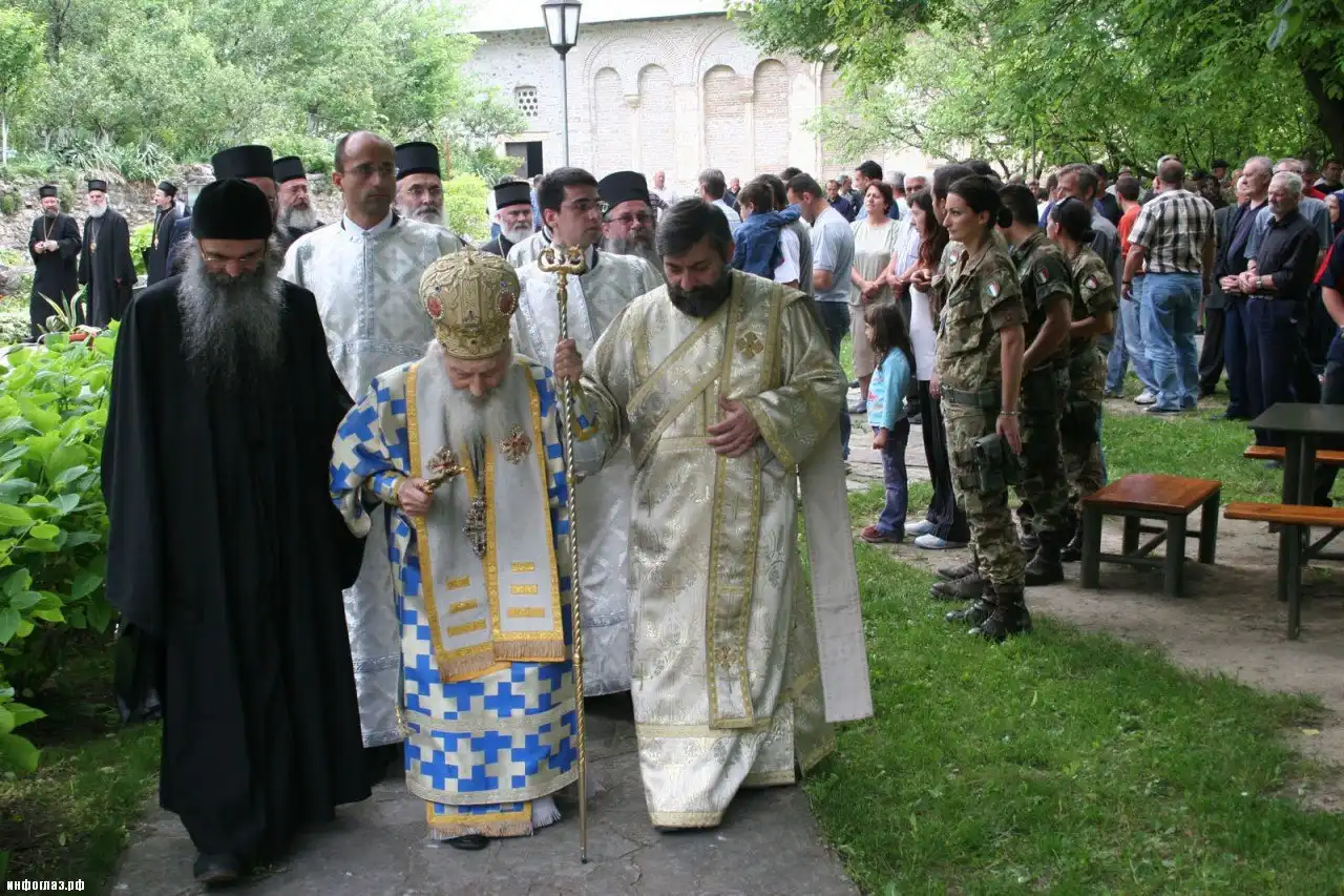 Патриаршая вилла была весьма ветхой: бетонное ограждение на лестнице почти совсем разрушилось… И все же из мебели имелось все, что было необходимо: так, в спальне стояла французская кровать в приличном состоянии… Патриарх сказал, чтобы из вещей ничего не трогали, пусть все останется как есть, но чтобы внесли его кровать, привезенную из Призрена. А была это самая простая и самая скромная кровать, какая только возможна: на обычный металлический каркас с четырьмя приваренными к нему ножками положены доски, а поверх них полотняный матрас, набитый сухими кукурузными листьями. Без подушки.
