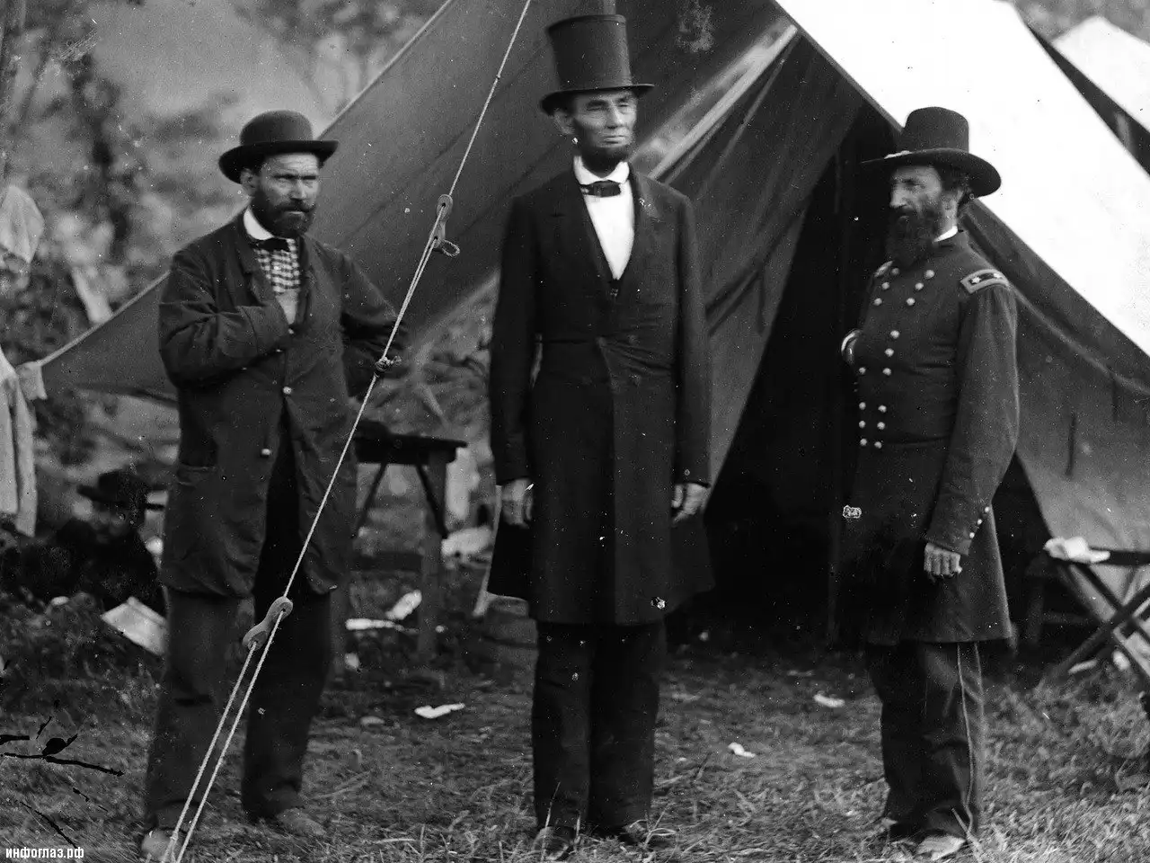 Allan Pinkerton, President Lincoln, and Maj. Gen. McClernand at the Battle of Antietam in Maryland on October 3, 1862.