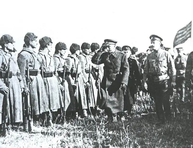 Командующий Сибирской армией Р.Гайда обходит строй Почетного караула. Ст. Екатеринбург-I, 8 мая 1919 г.