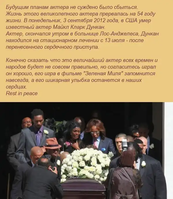 Хороший был актёр вот только большой вес погубил его сердце не выдержала(