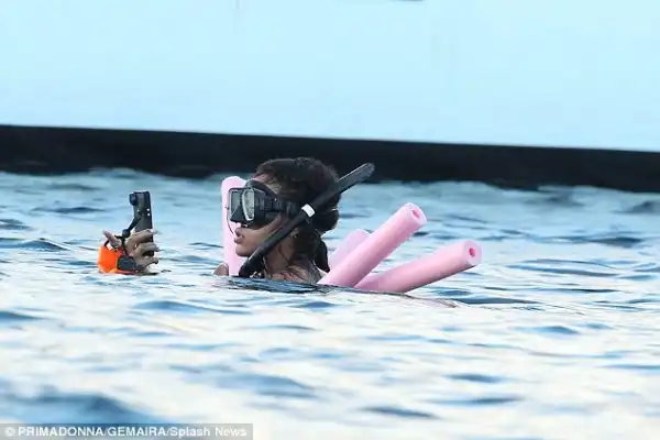 Рианна с друзьями отдыхает на Барбадосе, она ныряла с маской и трубкой, и продемонстрировала безупречную фигуру. Так же она встретилась с родными, проживающими на Барбадосе.