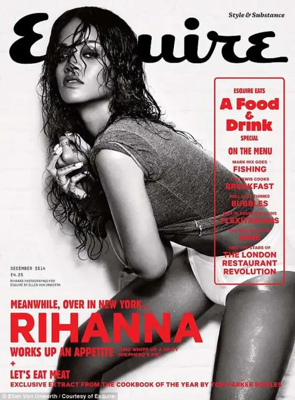Легендарный фотограф Эллен фон Унверт (Ellen von Unwerth) сняла Рианну (26) для обложки декабрьского номера журнала Esquire.