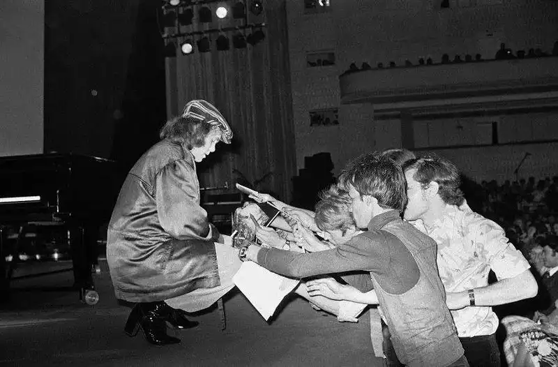 «Это было что-то невероятное, — рассказала «Собеседнику» Наталья Михайловна, по сей день продолжающая работать с западными артистами. — Незадолго до Элтона Джона, в декабре 78-го, к нам приезжали Boney M. Но то была все-таки поп-музыка. Привозили мы и исполнителей из соцстран. Обычно у них с собой было около двух тонн оборудования. Элтон привез 11 тонн — фантастика по тем временам! В Москве концерты проходили в зале «Россия», служебный вход которого находился за забором, а в Ленинграде поклонники собирались прямо у дверей «Октябрьского». Он их даже из окна гримерки приветствовал. Тогда ведь не было никаких охранников. Я находилась с ним в «Чайке», и однажды после концерта машину раскачали так сильно, что стало страшно.