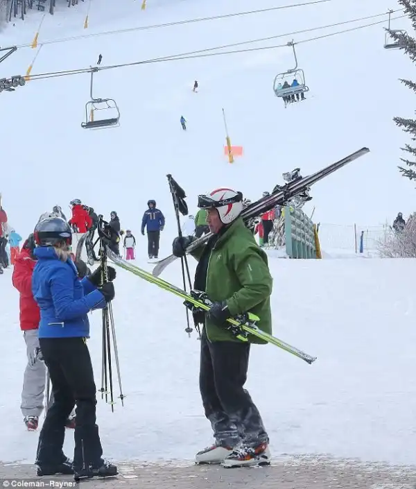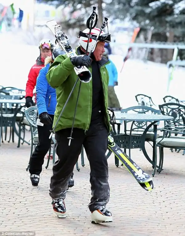 Арнольд Шварценеггер с подругой Хизер Миллиган на горнолыжном курорте Сан-Валли, штат Айдахо.