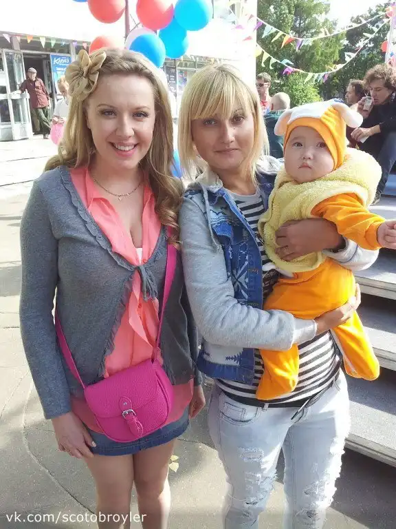 Ща я вам всю малину обгажу своим умничаньем: Я не знаю, что это за баба, но предполагаю, что это биологическая мать одного из двух ребятишек, снимавшихся в сериале (Коляновского сына или Эдиковой дочки), устроила фотосессию с актерами. Все просто, ёпта!