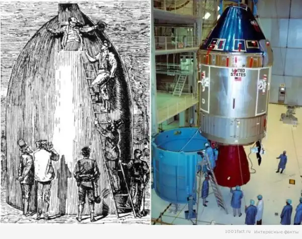 Романы «Полет на Луну» и «Вокруг Луны» вызывают у читателей вопрос: «Откуда он узнал?!» Судите сами. При постройке «Колумбиады» и «Аполлона» был широко использован алюминий. Основной блок «Аполлона-11» имел собственное имя «Колумбия». В экипажи входило по трое астронавтов. (Оцените созвучие фамилий: Барбикен-Николь-Ардан на «Колумбиаде» и Борман-Ловелл-Андерс на «Аполлоне-8»!) Место старта – полуостров Флорида. Место приводнения – Тихий океан.