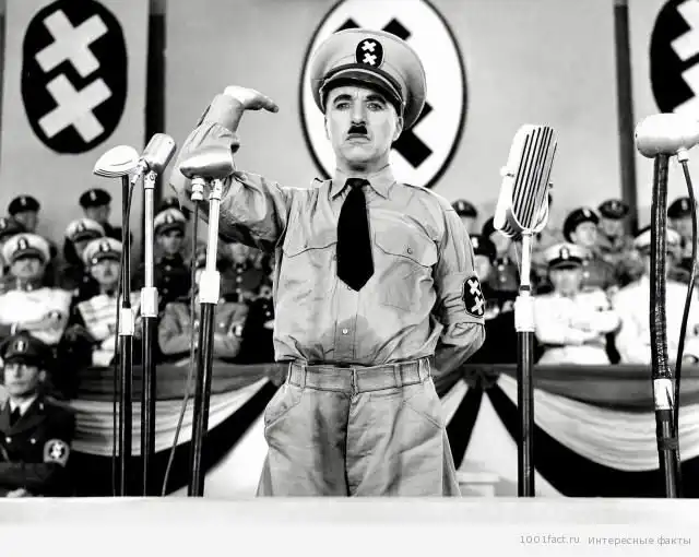 Есть особая связь между Чарли Чаплином и… Адольфом Гитлером. Во-первых, Чарли старше фюрера всего на четыре дня. Во-вторых, в 1940 году Чаплин снял острый антивоенный фильм «Великий диктатор», в котором высмеивался образ Гитлера. В то время отношения между США и гитлеровской Германией были нейтральными, и на Чаплина давили «сверху», чтобы избежать международного скандала. После того, как Германия напала на СССР, давление прекратилось. Имеются подтверждения, что Гитлер заказал копию «Великого диктатора» и смотрел его. После этого геббельсовская пропаганда обозвала англичанина Чаплина евреем. Кстати, «Великий диктатор» — первый звуковой фильм Чаплина, и последний, где он появился в образе Бродяги.