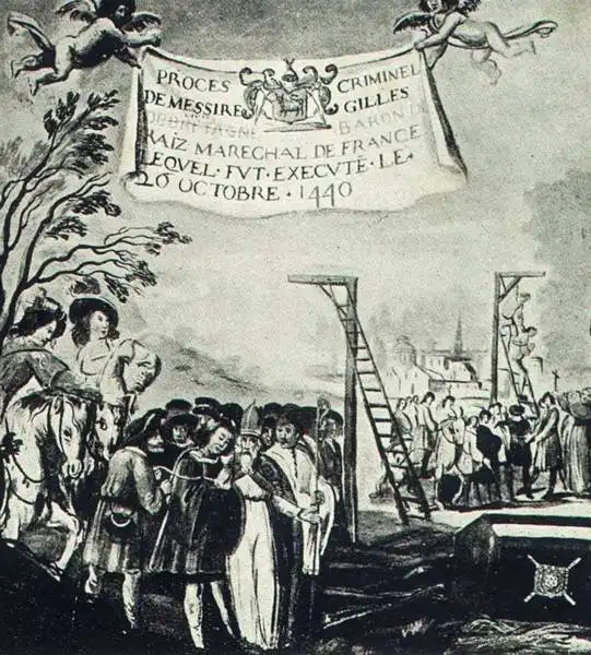 Под пытками де Рец признается в убийстве 140 мальчиков, в подписании договора с сатаной и еще огромном количестве преступлений перед людьми и богом. Алхимик Прелати дает против него показания. В результате маршал Франции приговорен к повешению с последующим сжиганием тела на костре. 26 октября 1440 года мятежный дух де Реца расстался с тридцатишестилетним телом. Событие сопровождалось торжественным шествием духовенства и народа по улицам города.