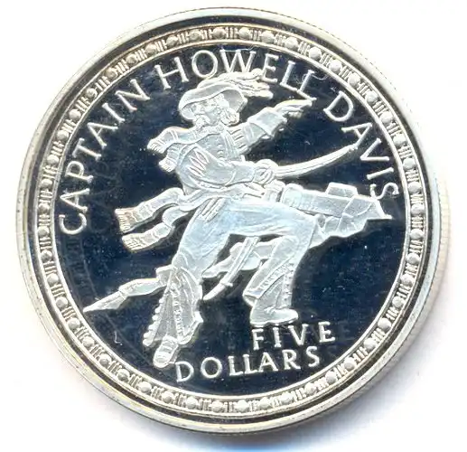 5 долларов. Багамские острова. Пират капитан Хоуэлл Дэвис. 1993 г.
