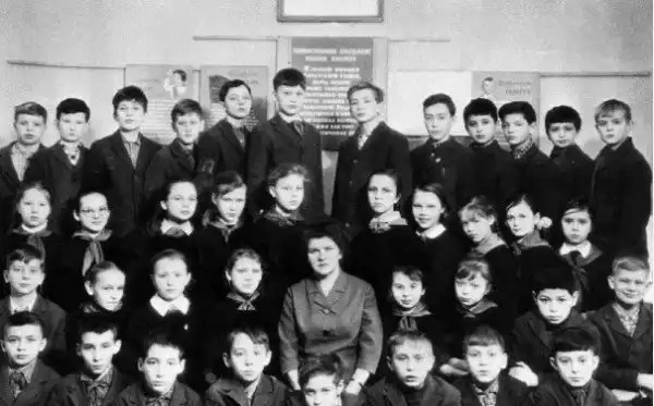 Школьное фото Путина в Санкт-Петербурге (первый ряд, третий справа)