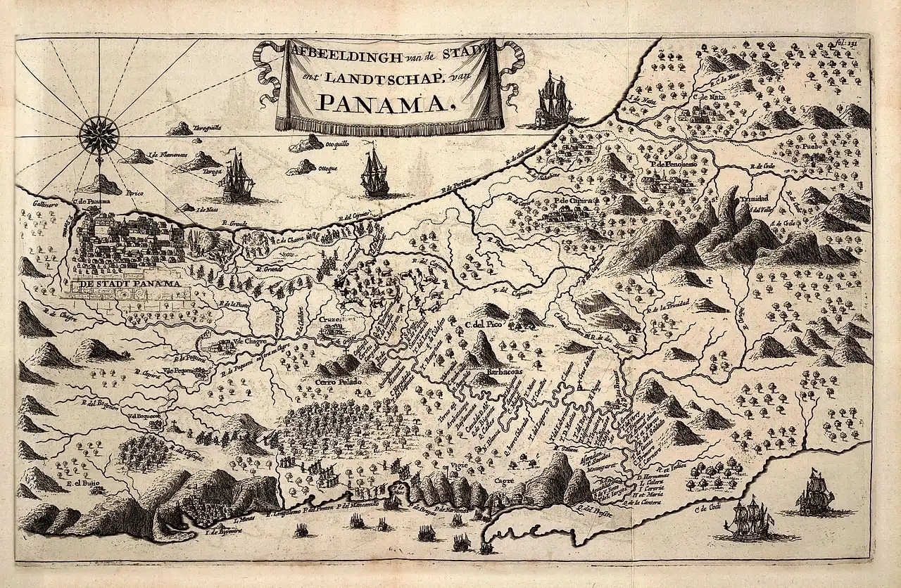 Город Панама, лежащий на берегу Южного океана, под 9° сев. широты, был тогда одним из величайших и богатейших городов Америки, в нем было 2000 больших, частью великолепных, и 5000 меньших домов, но и те почти все были трехэтажные. Многие из них были каменные, все прочие построены из кедрового леса, красивы и роскошно меблированы. Их окружали вал и стены.