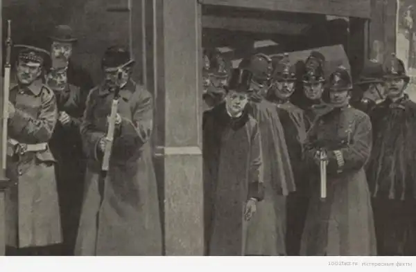 Горячая кровь рода Мальборо нередко толкала молодого (и не только) Черчилля на не слишком-то разумные поступки. В 1910 году он стал министром внутренних дел. В том же году в Лондоне русские террористы, ограбив ювелирный магазин, устроили стрельбу и убили двух полицейских. Черчилль прибыл на место событий и лично руководил операцией. Террористы отчаянно сопротивлялись. Стреляли и по нему – пуля пробила министерский цилиндр. Черчилль вызвал два орудия Шотландской гвардии – и запретил пожарным тушить дом с бандитами, когда он загорелся. За личное участие его язвительно критиковали в парламенте. Но на следующий год лондонская полиция получила право ношения огнестрельного оружия.