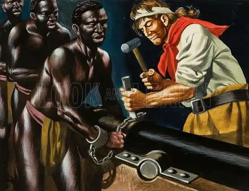 Настал апрель 1721 года. Завершив все необходимые приготовления, Бартоломью Робертс двинулся к вожделенным берегам Африки. Помимо получения новой добычи, он намеревался с выгодой для себя и команды поменять имевшиеся у них награбленные ценности на золото. Золоту, надо заметить, Черный Барт как‑то особенно доверял. Флагманом эскадры стал, как можно было догадаться, губернаторский фрегат. Причем в трюмах «Королевской удачи» находилась большая часть сокровищ, добытых пиратами. Команда фрегата достигала 228 человек, в числе которых было 48 негров. На «Большой удаче» численность команды была не так велика: 140 душ, и из них 40 – негры. Разношерстность команды вела к проблемам в плане повиновения. Чтобы держать эту оголтелую свору под контролем, Черный Барт нередко прибегал к чересчур свирепым мерам, нещадно наказывая за малейшую провинность. То, что он, случалось, перегибал палку, не могло снискать ему больших симпатий команды. Назревал бунт. Во главе его оказался Томас Энстис, ближайший сподвижник Хоуэлла Дэвиса, перешедший после его гибели на службу к Робертсу. Несмотря на то что Робертс ценил Энстиса, и причем настолько, что даже доверил ему «Большую удачу», тот считал себя незаслуженно обделенным. Он подговорил команду «Большой удачи», и они решили сбежать с имевшейся у них на борту добычей. Черный Барт был вне себя, но преследовать изменников не стал, не желая поступаться своим маршрутом. И в июне 1721 года «Королевская удача» встала на якорь у побережья Африки, попутно захватив четыре корабля; Черный Барт приказал три из них сжечь, а четвертый, тот что был получше остальных, переименовал в «Маленького бродягу» и перевел на него часть команды. После этого корабли пиратов двинулись к Либерии; там их жертвой стал фрегат «Онслоу» с большим грузом ценностей и денег. Этот фрегат Черный Барт также не стал сжигать или топить, поскольку предпочел присоединить к эскадре. Правда, над названием хорошенько подумать времени не было, а потому «Онслоу» превратился в еще одну «Королевскую удачу».